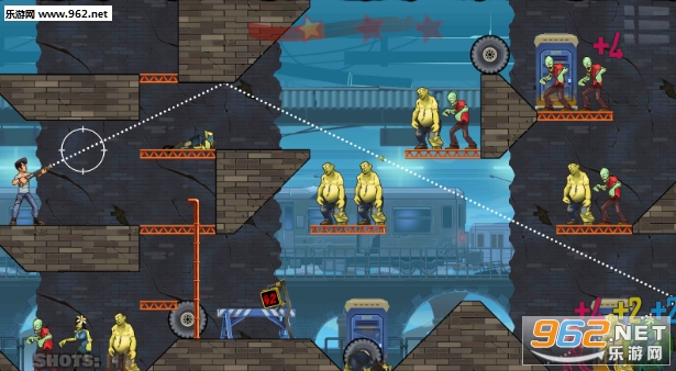 1、滑动屏幕进行瞄准,通过观察辅助线你可看见能够击倒的僵尸数量;