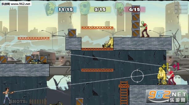 2、一颗子弹击倒越多的僵尸可以获得更多分数;