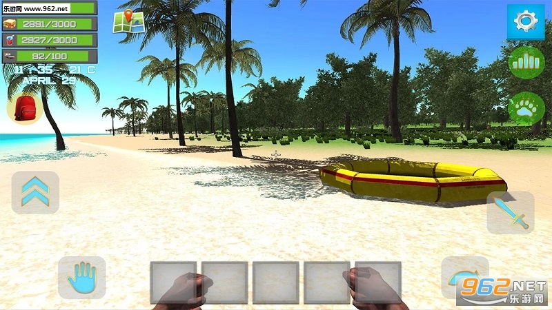 1、游戏中的主角遇到了海难,漂流到孤岛,身上只有一把小刀,玩家要做的就是在孤岛上努力生存下去!