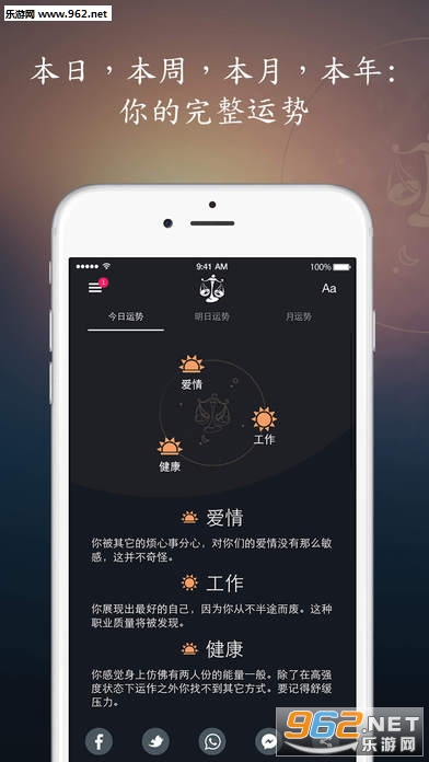 《星情运势》不单单是每日运势、星座配对,这款星座app可以称为星座的“百科全书”。除了每日运势之外,还有文艺范儿十足的 “星座物语”; “星座宝典”里,包含了大家都非常感兴趣的“星座情感”、“星座性格”、“星座百科”以及“趣味测试”。