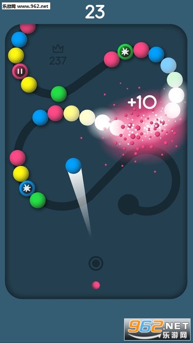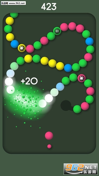 游戏采用了类似于经典泡泡龙的弹射消除玩法,同时又加入了贪吃蛇的元素,在不断加长的蛇球进攻之下,发射相同颜色的小球进行消除,切断更多的蛇球,来完成闯关挑战!