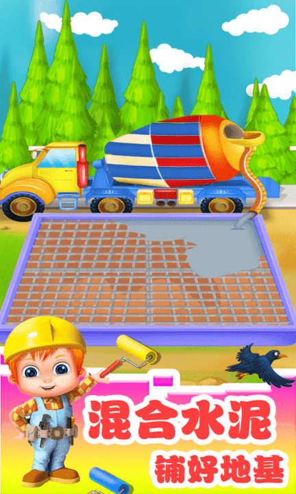 在宝宝建房子世界中,宝宝们需要控制不同的机器,如混凝土搅拌车,起重机,挖掘机,卡车和拖拉机等。