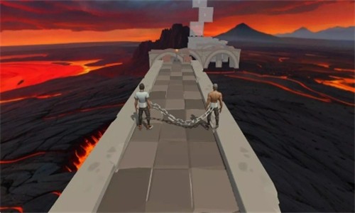 3、双人紧握铁链,同步步伐穿越障碍,默契是通关关键。