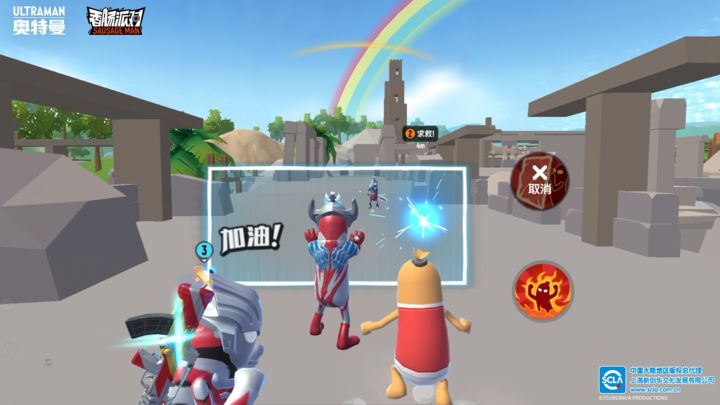 8、赛季限定街机模式:奥特派对。6V6休闲模式,变换阵营扮演怪兽或者胜利队队员进行对抗,达到一定条件时可随机获得奥特之力进行光线扫射