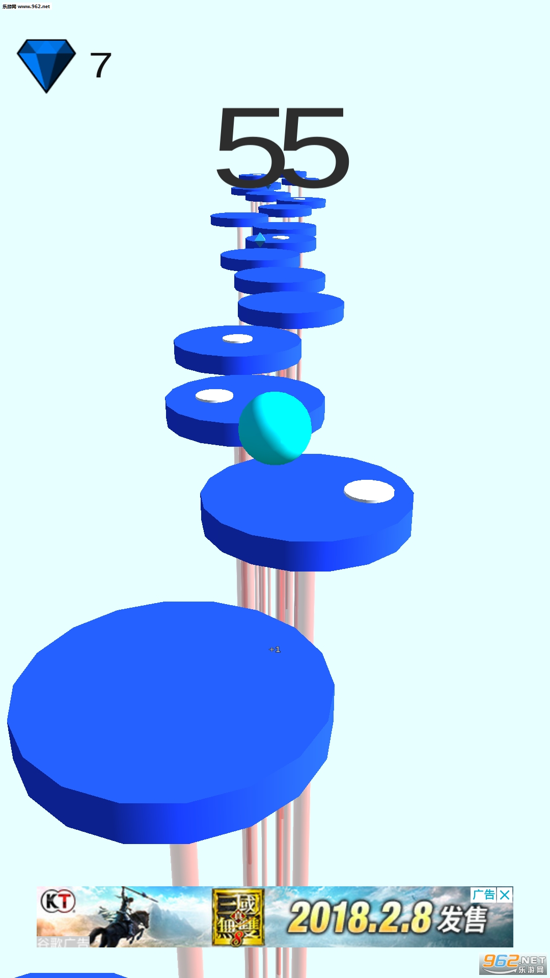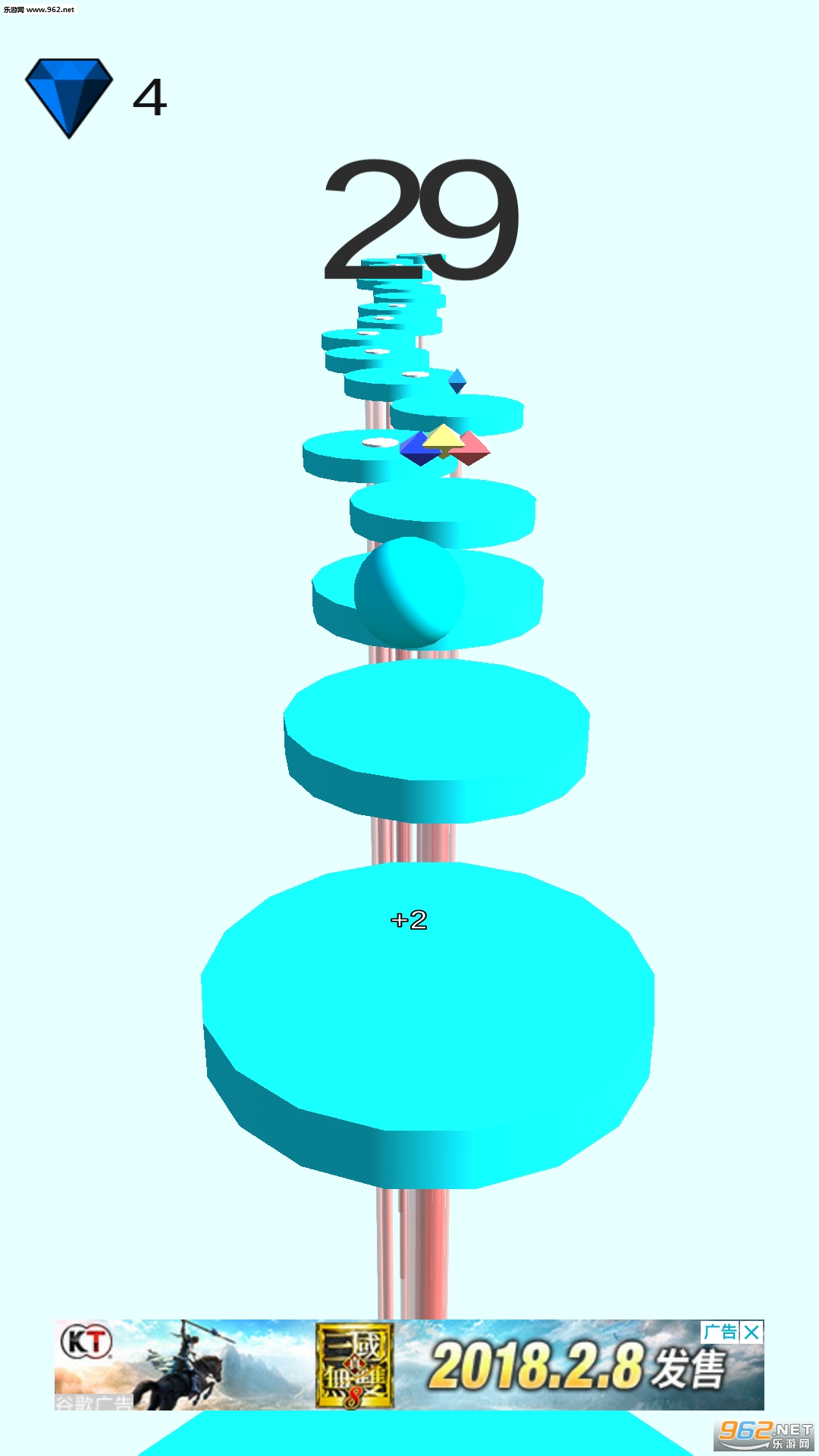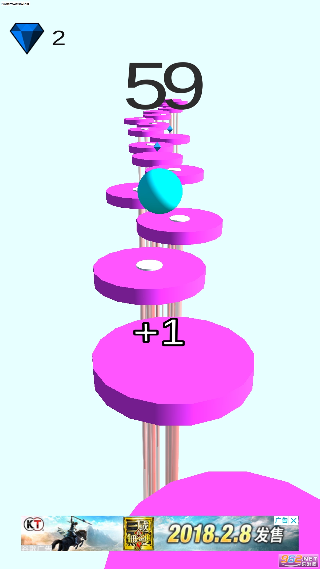 2、连续跳到方块的中心点,得分会翻倍递增,即2分、4分、6分、8分、10分…