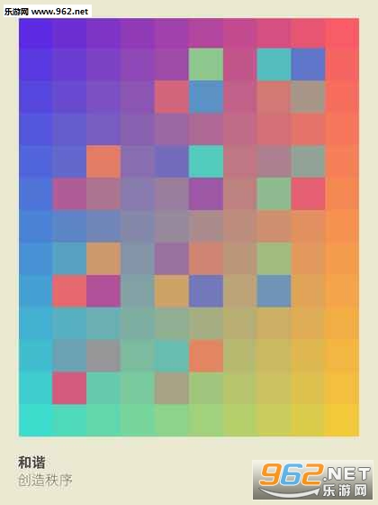 玩家只需将不同颜色的方块按照色调排序,调色盘内色块的数量也会越来越多,画面相当简约,色彩也以暖色调为主,给人一种舒适轻松的感觉。