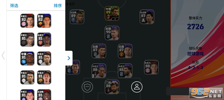 -快速比赛:玩家可以随便选择队伍进行比赛。
