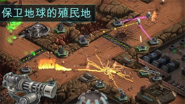 部署机枪、火焰喷射器、大炮和等离子炮塔来摧毁你的敌人。将你的塔升级到他们的实验阶段,包含强大的火力和蓄力攻击。
