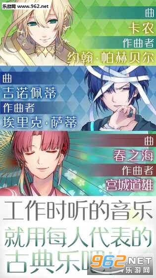 日系风格的休闲手游。将古典乐全部拟人化,创意还蛮有趣的。而且人设很棒,画风很棒,最重要播放的古典乐也非常好听!听不腻!玩家还可以搜集不同的古典乐男子,解锁更多角色的故事以及装饰!