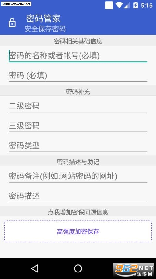 主密码SHA 散列保存,信息用主密码对称加密码保存,安全可靠。加密码后的所有信息都保存在本地,应用不需要网络权限