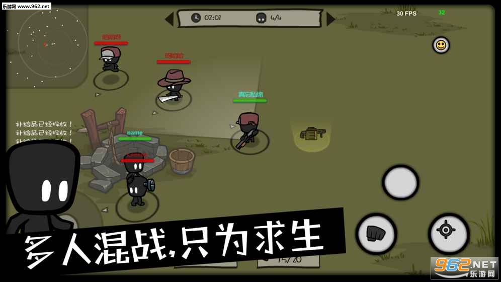《求生大乱斗》是一款多人在线大乱斗游戏,支持最多20人同场竞技。