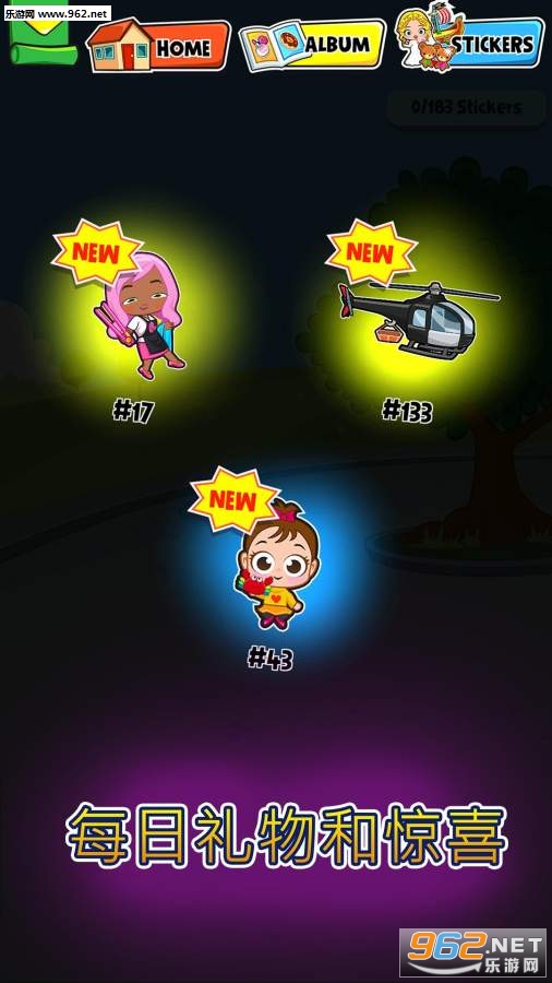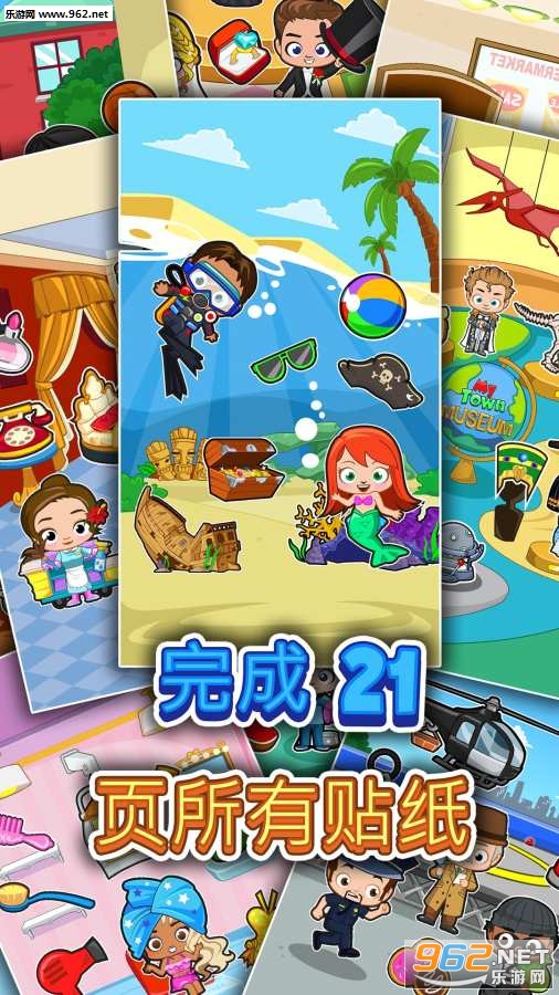 下载官方版My Town贴纸书游戏。收集大量炫酷贴纸,完成所有21页相册,每天可获取免费贴纸包和惊喜,并与朋友交换及交易贴纸。
