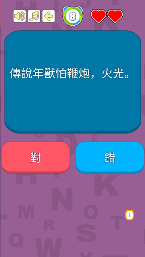 此游戏以通过猜对错的方式,让玩家可以复习包罗万象的中华及世界的传统文化,包括: