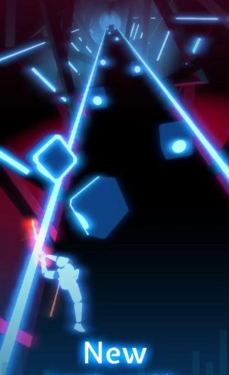 酷炫的赛博朋克风音乐跑酷游戏, 只要大家在同一片海洋冲浪,你想要的歌曲我们都有,紧张的游戏节奏感,各种各样的光剑武器,流畅的操作技术带来极致快感,只需挥舞光剑切开方块、躲避路上的障碍物就能抵达终点!