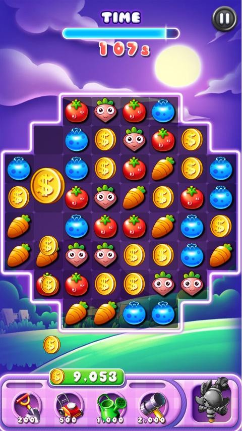 3、收集各种可爱的庄稼你用完之前,移动到目标水平!