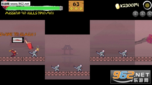 这款游戏是一个横版格斗的游戏,唯一不同的游戏中的场景是运动的,你需要抓住机会,在场景交汇的那一刹那,发挥你的剑术,一刀杀死所有的邪恶武士,你可以办到吗?