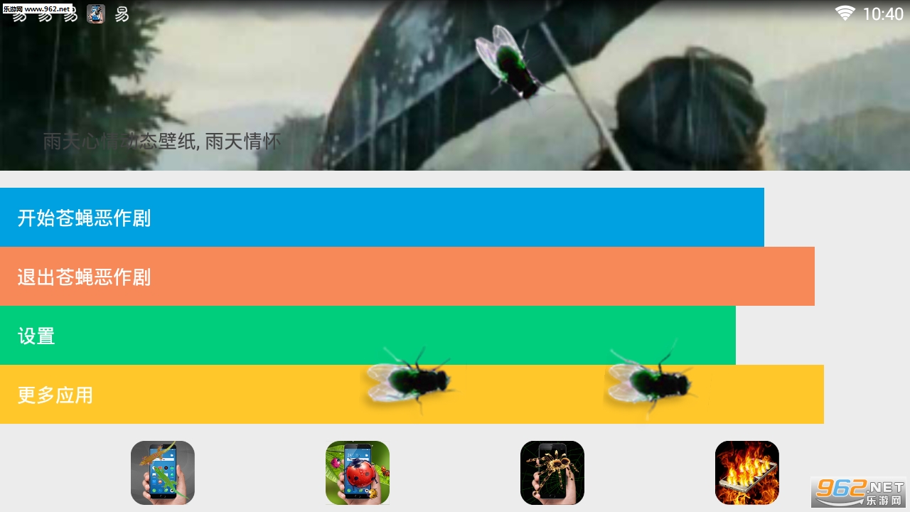 使用苍蝇在屏幕上爬软件,就能让你的手机屏幕上突然出现几只苍蝇,非常的逼真哦,用这款软件来恶搞你的朋友一定可以得到非常劲爆的效果!有兴趣的小伙伴可以下载试试看噢!