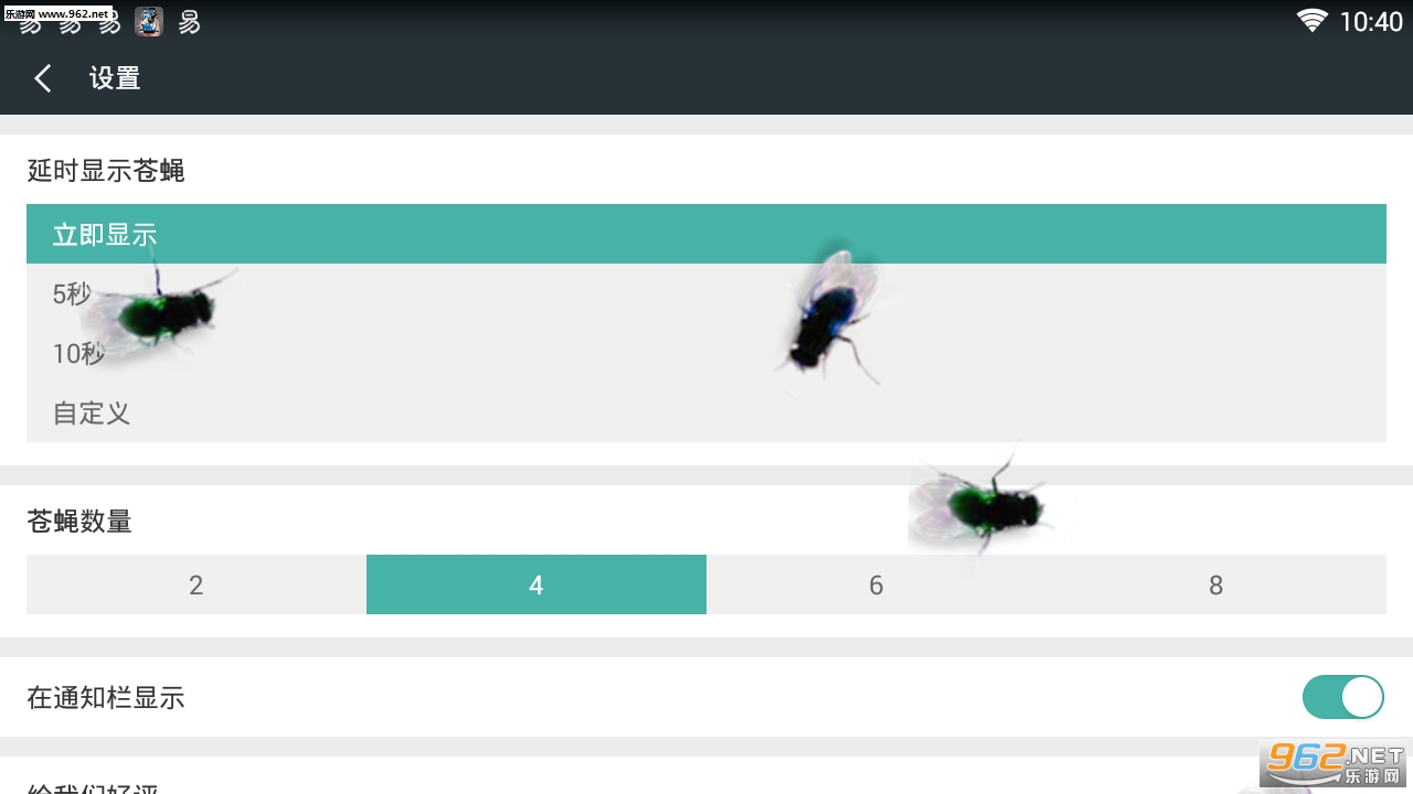 1 假借用好友的手机打电话,悄悄安装启动本应用,设置延时10秒显示苍蝇,