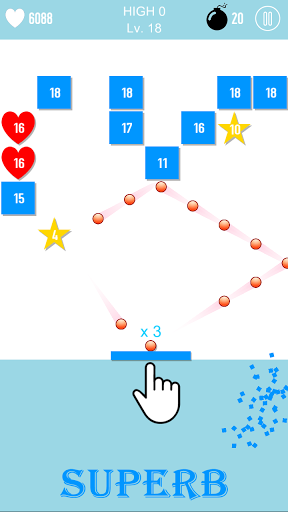 《 SuperB官方版》是一款弹球与打砖块结合的休闲小游戏,移动你的球拍接住球,然后让你的小球反弹出去,击碎那些砖块,计算好角度,让小球一次性打碎更多的砖块,当砖块打碎是=时记得拿球拍和物品,要时刻注意不要让砖块堆叠到了检查线,不然你就危险了。