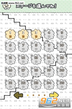 猫的台阶是一款休闲虐心小游戏,猫的楼梯不好走啊里只有两个按键,一个前进,一个转向,以最快速度到达顶点,考验反应能力。