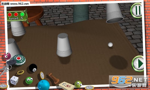 藏球游戏的目标非常简单:三个或更多一样的杯子口朝下放在桌子上,然后将一颗球放到其中一个杯子下,这样就看不到球了,然后快速改变杯子的位置。然后你要选出有球的那个杯子。考考你的眼力,猜中正确的杯子,让你在国际排名中占据一席之地。