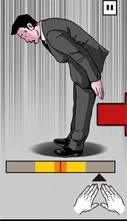 作为一款日系游戏,游戏采取了四格漫画作为表达形式,配合其下跪的主题、搞怪的情节,使得整个游戏都充实着一种《搞笑漫画日和》的即视感。游戏中的主角带着一股浓浓的屌丝气质,死板的黑色西服,苦逼的面部表情,再配上各式各样的下跪方式,不知不觉的就能戳中玩家的笑点。