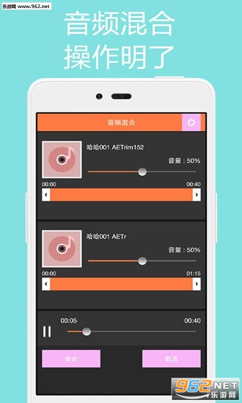2、音频混合;支持两个音频经行混合操作,专业的淡入和淡出效果;
