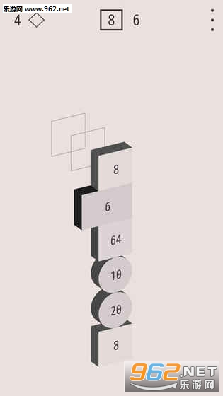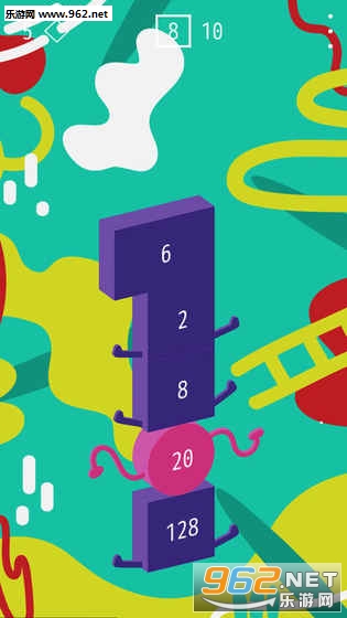 游戏采用竖版排列的方式,玩家双击屏幕会从上向下掉落带有偶数的数字的方块,相同数字的方块会融合在一起会相加成数字的倍数,屏幕最多能放下十个方块,玩家需要在规定的步数内尽量得到更大的数字方块。游戏每次会在屏幕上方显示两个连续掉落的数字,玩家可以通过向上或向下滑动改变一个方块的位置。
