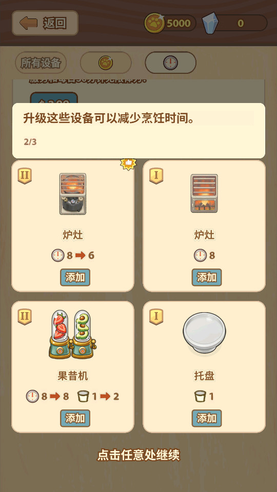 ·升级你的厨具,添置更多帮助提升烹饪技巧的道具。