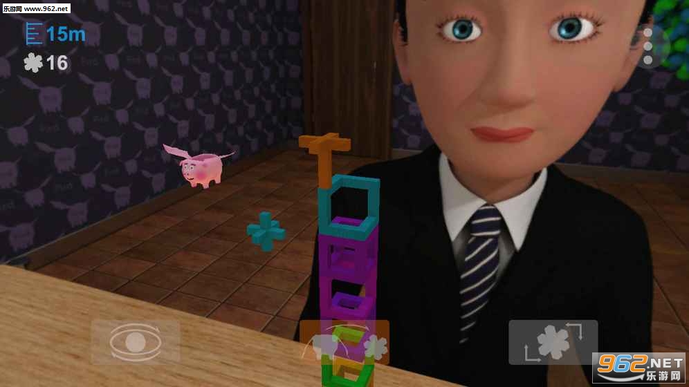 积木模式,可以自由控制视角和移动旋转积木进行高塔的搭建。
