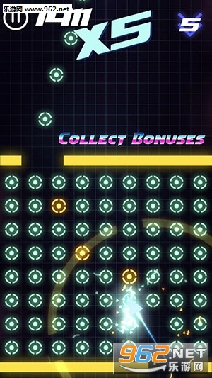 移动到发光几何图形的数字世界。避免橙色障碍物转向令人惊讶的快速霓虹灯火箭。你走得越远,你得到的分数就越多。收集奖金以获得额外分数!