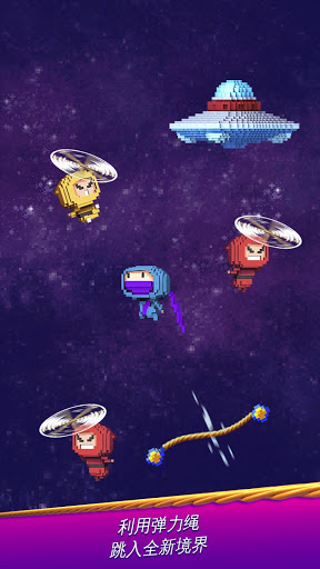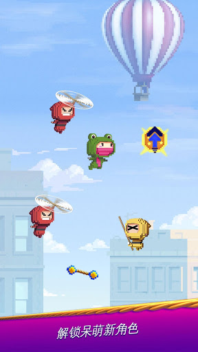 游戏采用熟悉的竖屏跳跃跑酷玩法,清新复古的像素游戏画面搭配简单的玩法,适合在碎片时间玩耍。