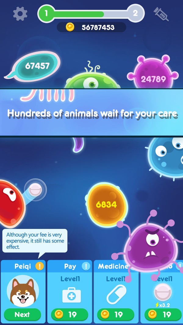 2、丰富的治疗挑战:游戏中设有多种不同的动物角色,它们各自患有不同的疾病。为了成功治疗它们,你需要掌握各种药物的使用方法和治疗技巧。不同的疾病需要不同的药物和治疗方案,这将考验你的智慧和耐心。同时,游戏还设置了丰富的治疗挑战,让你在挑战中不断提升自己的医疗水平。