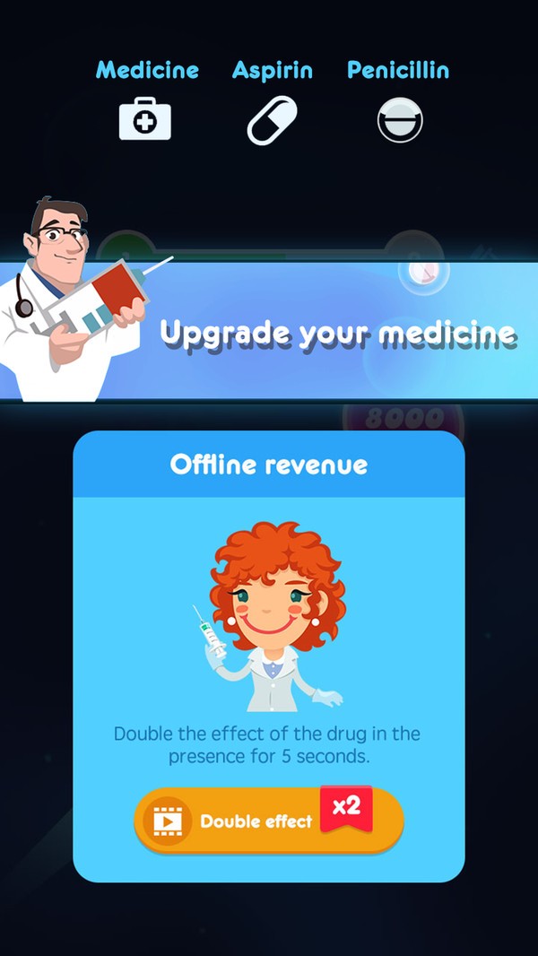 4、玩家通过放置的玩法,观察药物对病菌是否有效果,