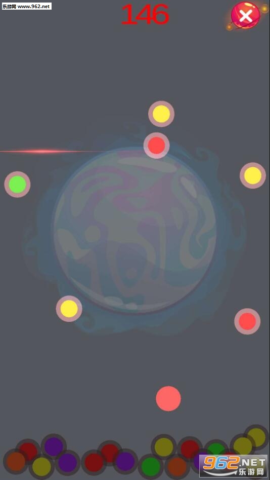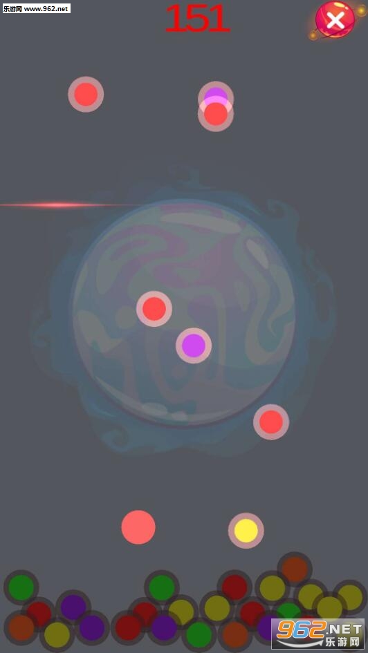 通过屏幕左右滑动来吃到掉落的透明小球,增加分数是自己可以获得更大的形态,如果没有吃到那么小球就会变暗,此后玩家只能通过吃相同颜色的魔力小球来消除变暗的小球,当堆积的小球超过激光切割线的时候游戏结束。