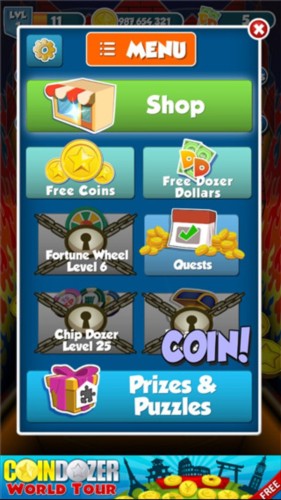 金币推土机的玩法和现实中的推币机十分类似,玩家的目标任务是利用推土机将尽可能多的金币推出农田,全新3D视角设计和专业物理碰撞特性增加了游戏的现实感和可玩性,内置超多挑战关卡,让你可以尽情展现自己的操作技巧,有些关卡难度相对复杂,需要玩家耐心思考才能过关,而且当你通关后,不仅可以获取特殊的硬币和奖品,还能够提高自己的推币技巧,为下一次的挑战做足准备。