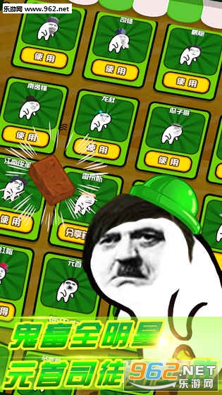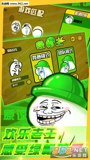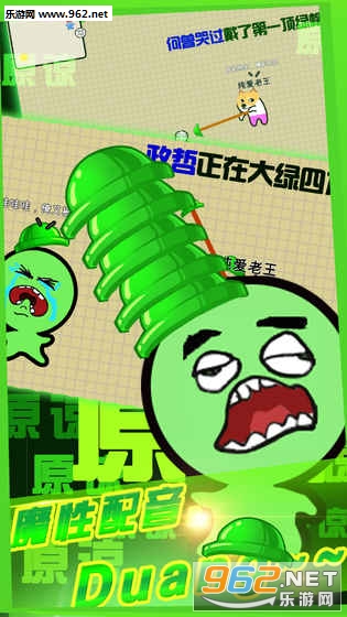 《隔壁老王大作战手机游戏》是一款画面非常魔性的多人对战游戏,游戏中的角色是各种搞笑的表情人物,玩家可以控制人物进行冒险,利用手中的棍子收集地上的绿帽,然后将绿帽戴到其他小伙伴的身上,最后谁的绿帽多谁将成为绿帽王。