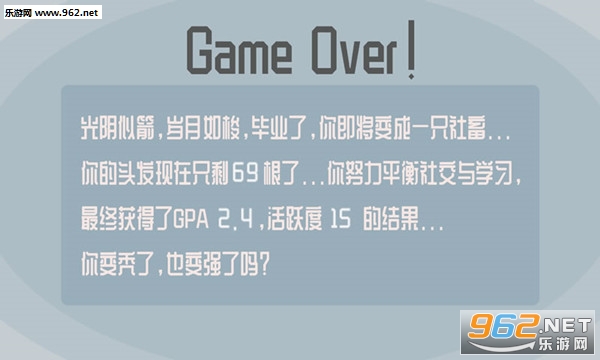 一款非常奇葩的休闲手游,是的困扰当代大学生最重要的问题是脱发。游戏采用重力感性的形式,玩家需要平衡好学业与自己的社交等,画风简洁且魔性!