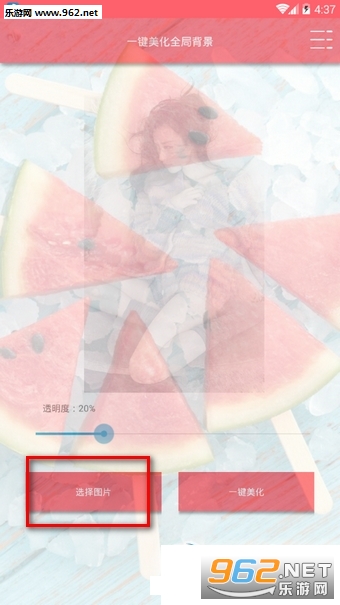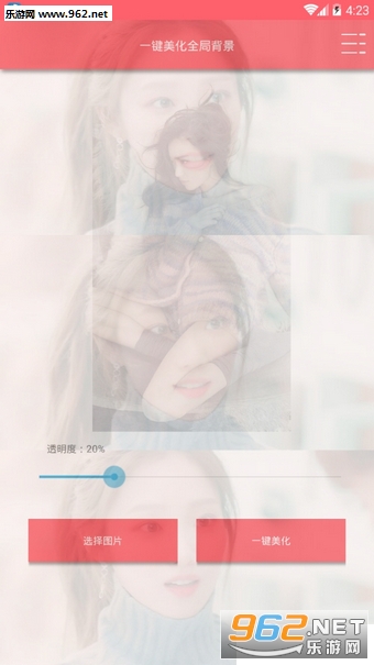 4、然后选择一键美化即可,可以根据自己的喜好来调节透明度。