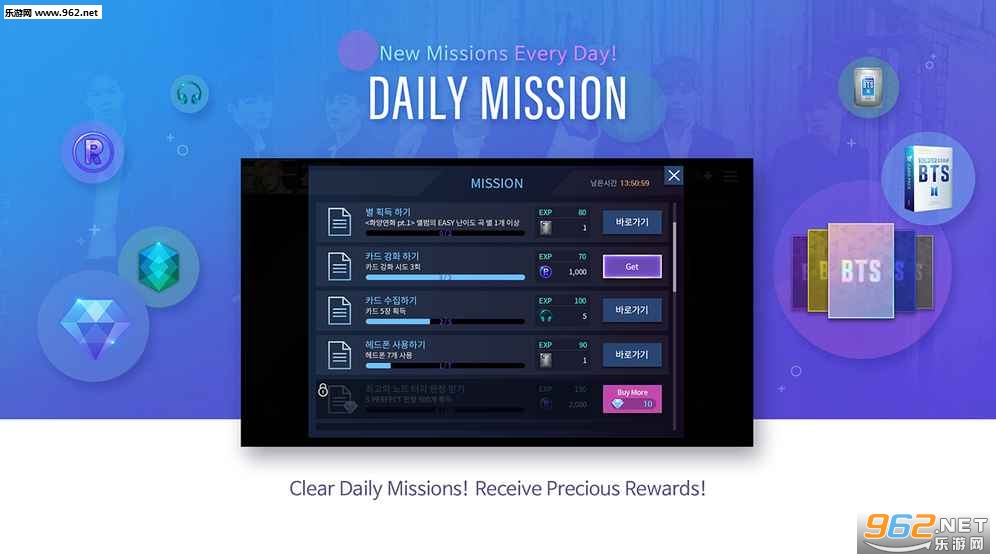 SuperStar BTS国服官方版是一款粉丝向音乐节奏类点击休闲手游,收录防弹少年团所有音乐,在传统敲击音符玩法基础上加入滑动屏幕的操作方式,含有pk和闯关系统。任务系统,难度不同,奖励不同,喜欢挑战的童鞋们速度来挑战吧!