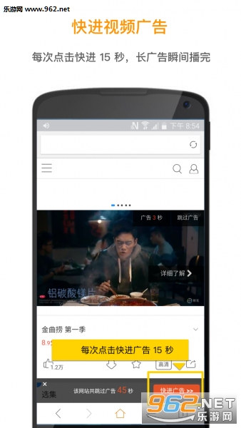 甚至在某些特殊的视频界面,我们可以选择一键快进广告!总之无广告的视频生活等你来体验!