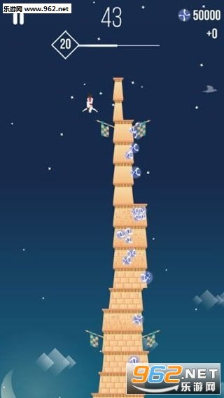 到最后方块完全不能放在下面叠加的方块上的时候,就操纵小人跳下来。小人在跳下来的过程里可以左右移动吃紫色的那个星星(其实不是星形的,反正是紫色的)。
