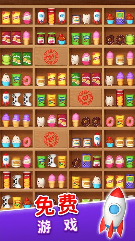 2、游戏内设置了丰富的关卡,每个物品都是一个Q版的零食糖果。
