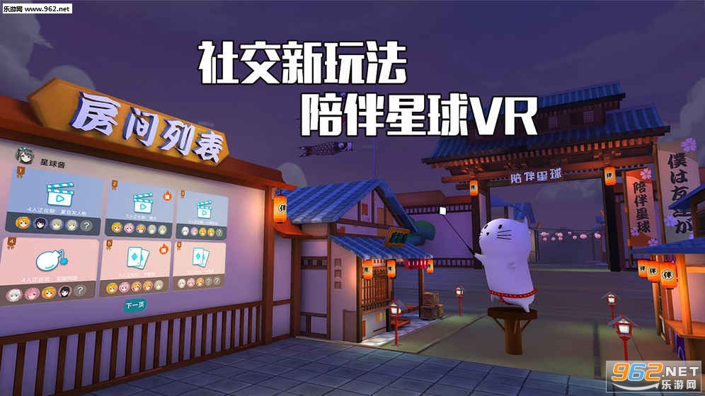 这是个二次元风格的VR社交APP,进入陪伴星球后,每个人都有专属形象化身,大家可以实时语音交流、看电影,以及一起玩各种小游戏!(需要插入有线耳机)