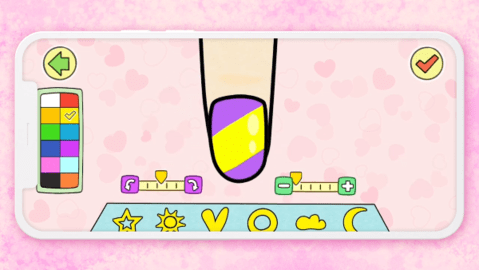 1、很轻松的美甲装饰小游戏,使用指甲油,让顾客的手更漂亮。