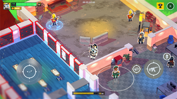 彩虹六号smol将roguelite元素与射击游戏相结合,采用动画卡通风格设计,玩家作为一名刚刚加入精英彩虹小队的新成员,你的任务就是消灭潜伏在暗处的邪教组织的基地,维护世界的和平,游戏的关卡挑战丰富多样,场景设计精美细腻,还可以根据玩家的习惯自由切换不同的语言版本,你要灵活运用自己的战术思维,和团队队员努力合作,才能够最终完成你的任务。