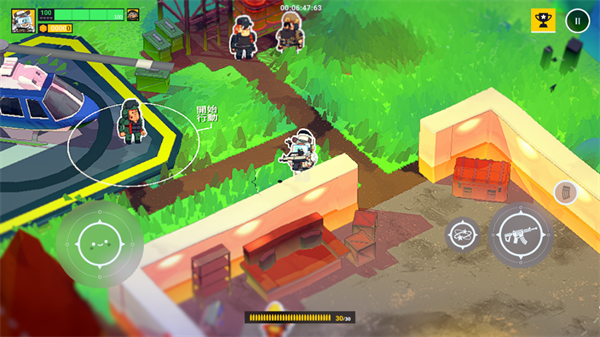 3、迎来新的伙伴,他所有动作都会和你同步,使用摇杆瞄准目标,