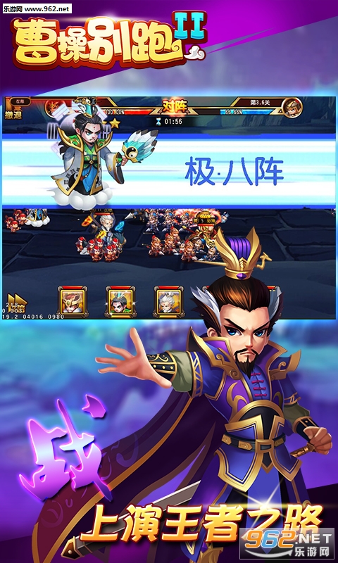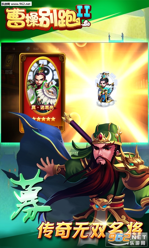 开局即送顶级神将赵子龙!次日顶级神将貂蝉免费拿!真正全民橙卡时代已经到来!收吕布降周瑜,冲发一怒为二乔,万人国战正式开启,称霸中原指日可待。复古像素风《曹操别跑II》火爆来袭!玩家可以收集众多三国名将进行培养,并率领大军参与国战,攻城略地,在乱世中建立属于自己的势力。全民橙卡,名将养成,史诗国战,经典战役,萌逗剧情,争夺皇位,尽在《曹操别跑II》!