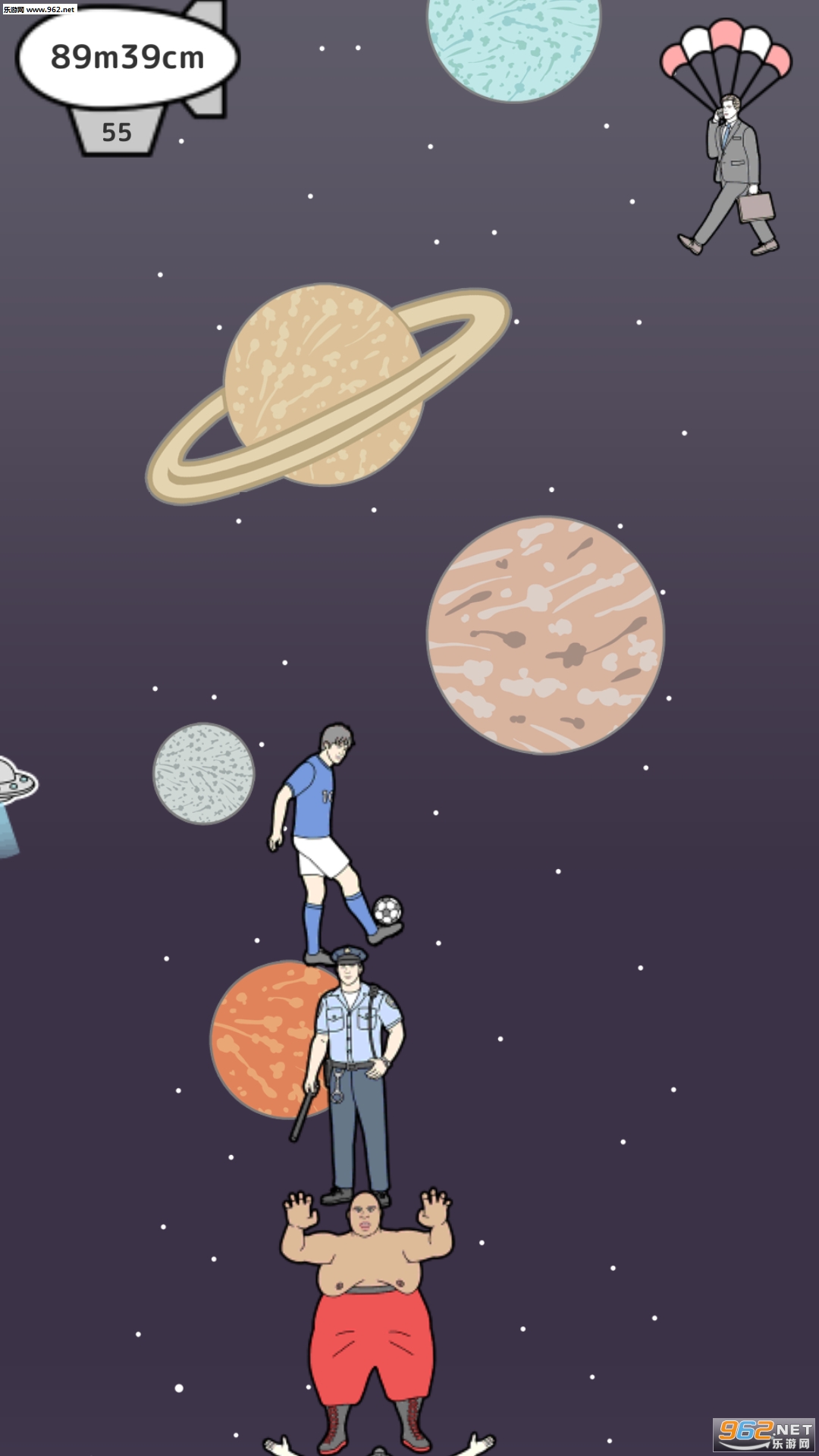 因为大多数男人的姿势都是不对称的,所以加大了堆叠的不稳定性,至于旁边时不时飘过的障碍,可以选择点掉或叠高忽略掉。
