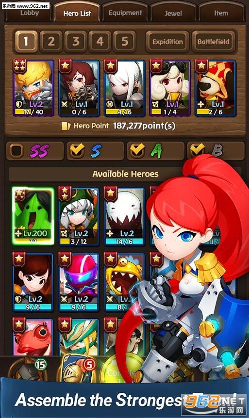 3、英雄也分有SR、S、A、B的区别,SR最强,B最弱。